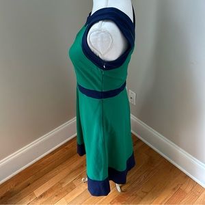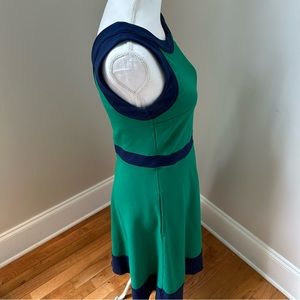 Lands End Womans Sleeveless Green Navy Fit & Flare Stretch Knit Dress Size 8