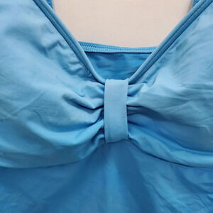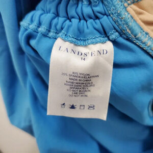 Lands' End Woman's Solid Blue Cinch Side Plunge Neck Swim Tankini Plus Size 14