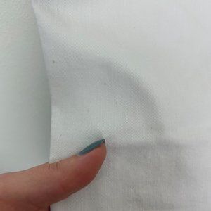 This is a pair of white mid rise straight leg pants from Lands' End. A classic preppy pair of pants.