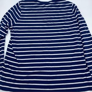 Lands’ End Woman’s Top Large Long Sleeve Navy & White Stripe