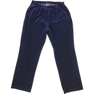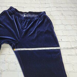Gently used Land’s End Woman’s navy blue velour wide leg high waist pants size M-P 10-12
