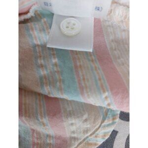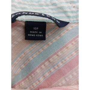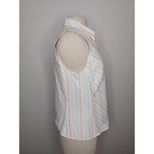Lands End Women 10 Petite Sleeveless Collar Button Down Blouse Pastel Seersucker