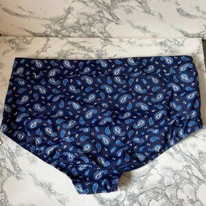 Lands End Women 20W Paisley Floral Swimsuit Bottom Bikini Navy Blue Stretch NEW