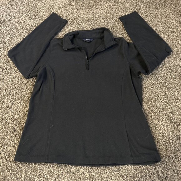 Lands End Women 6-8 Small Black Quarter Zip Fleece Pullover Sweater Jacket