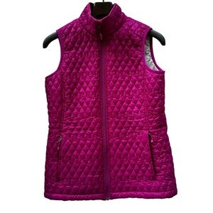 Land's End Women Fuchsia Quilted Vest Mock Neck Full Zip Lightweight Size S 6-8
