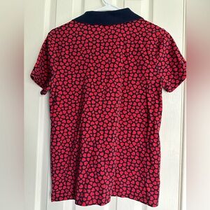 Lands' End Women Heart Print Short Sleeve Polo Shirt Red Medium 10-12