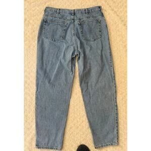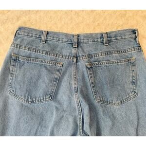 Lands End Women High Rise Mom Straight Leg Medium Wash Coton Blue Denim Jeans 16