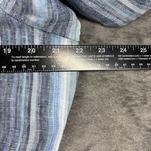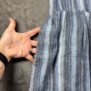 Lands' End Women Linen Sweetheart Button Front Midi Dress Blue Stripe Large G273