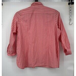 Land's End Women Long Sleeve Button Up Shirt 3X Flip Cuff Roll Tab Breathable pink white striped light summer coattagecore laganlook beachy plus size shirt