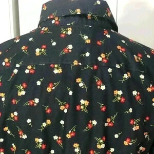 Lands’ End Women Long Sleeve Dark Blue Floral Supima Cotton Button Up Shirt Sz 8