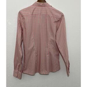Lands’ End Women No-Iron Pinpoint Oxford Pink Green Plaid Button Up Shirt Size 10