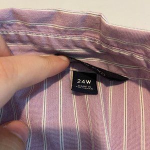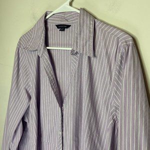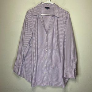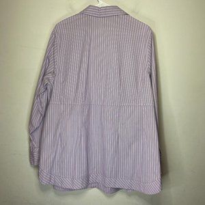 Lands End Women Plus 24W Striped Button Up Shirt Blouse Purple Collar Stretch
