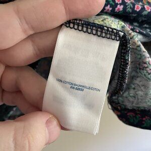 Lands' End Women SZ XL Navy Blue Microfloral V-Neck Short Sleeve Pullover Tee