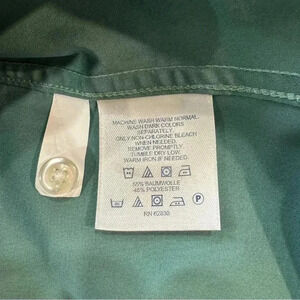 Questions? Leave a comment below! Classic button down shirt, with darts on the chest area for a tailored look, or you can wear it open over a tank. beautiful pale green color, lightly worn comes from a smoke free pet free home.