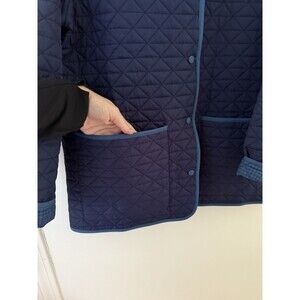 Lands End Women Size XL Jacket Coat Snap Down Blue Quilted Plaid Reversible