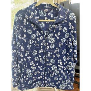 Lands End Women Sz Large 14 16 Jacket Full Zip Front Fleece Blue Flowers LikeNew