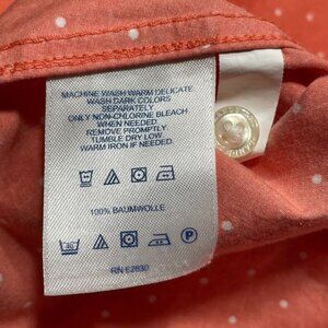 Elevate your wardrobe with the Lands End Womens Button Down Blouse. This pink, polka-dot shirt is a size 26W, no-iron, 100% cotton beauty. With its V-neck, collar, long sleeves, wing cuffs, and button-up design, it offers a tailored look perfect for any occasion.