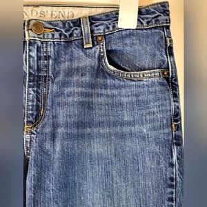 Lands End Women's Size 10 Original Fit Blue Medium Wash Modern Waist Boot Leg Jeans are pre-owned. They have some distressing at the bottom of the legs (Please see last two photos for details.) no visible defects. They have been stored in a smoke free environment. Please see photos, and product description for measurements.