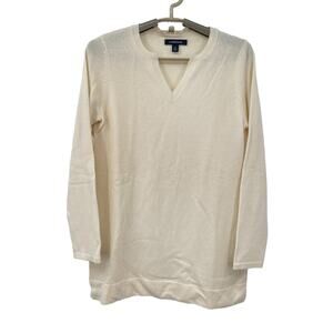 Lands End Womens 100% Cashmere Sweater Tunic Notched Neck Ivory Size XS/S