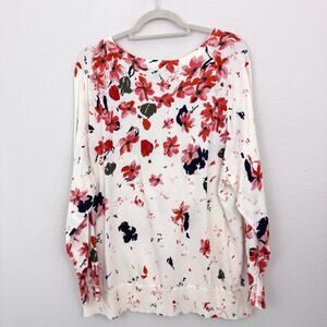 Lands' End Womens 100% Supima Cotton Sweater Size 3X Floral Knit Office Feminine