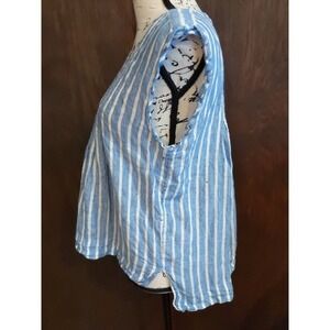 Lands End Women's 12P Petite Top Blouse 100% Linen Blue Stripe Sleeveless Hi low