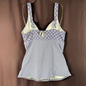 Lands' End Women's 14, 14-18W LONG V-Neck Wrap Underwire Tankini Swimsuit Top Blackberry Geo Mix