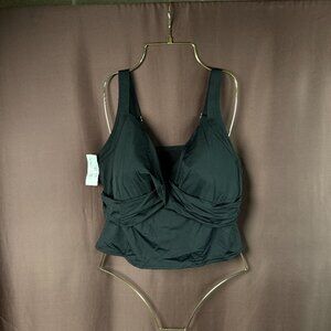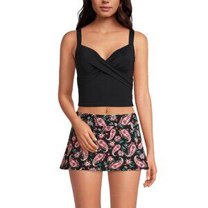Lands' End Women's 14, 14-22W LONG Black V-Neck Wrap Midkini Top