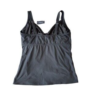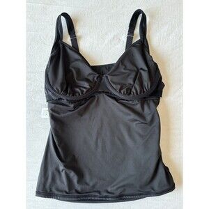 Lands End Womens 16 W Wrap Front Swim Top Black Solid Tummy Control Tankini.