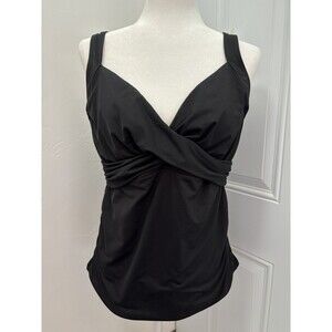 Lands End Womens 16 W Wrap Front Swim Top Black Solid Tummy Control Tankini