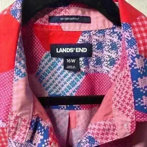 Lands End Women’s 16W button down Supima pink red blue shirt
