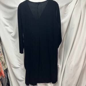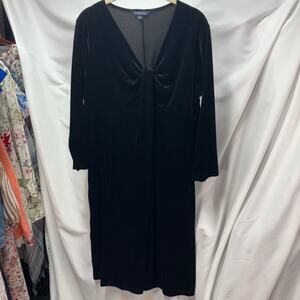 Land's End Womens 18 V-Neck Long Sleeve Black Velvet Shift Dress Classic