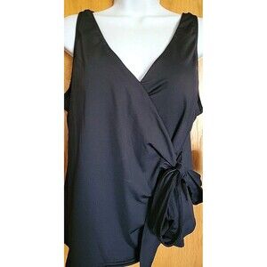 Lands' End Women's 18D Black Tankini Top Swim XL Side Tie Solid V-Neck S1029