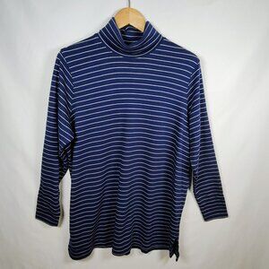 Lands' End Women's 1X 16W-18W Striped Turtleneck Long Sleeve Top