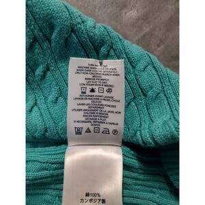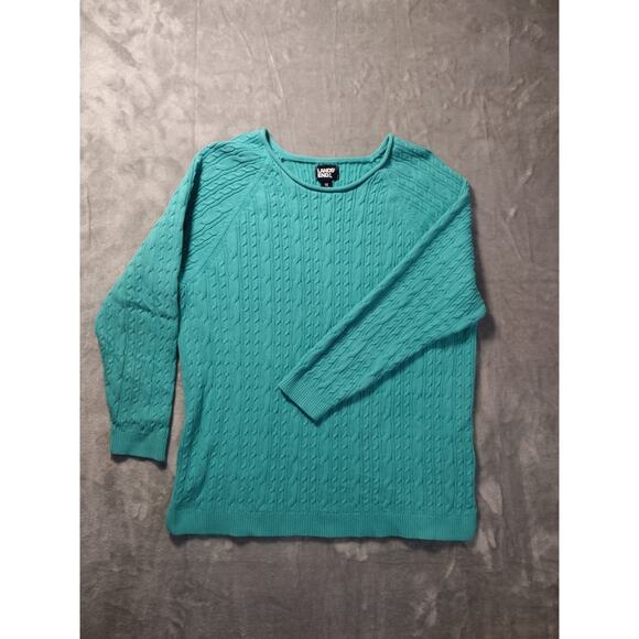 Lands End Women's 1XL Teal Cable Knit Cotton Sweater Drifter Rolled Neckline