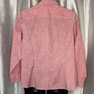 Lands’ End Women’s 20W Pink White Floral Microprint No Iron Pinpoint Oxford Top