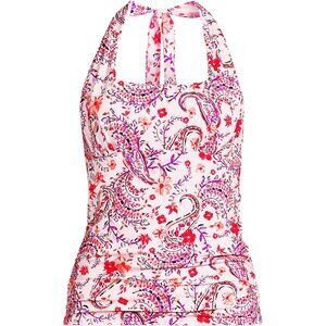 Lands' End Women's 2-10 LONG Square Neck Halter Tankini Top Swimsuit Lily Floral Paisley