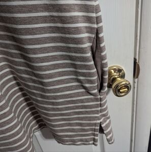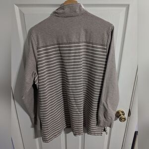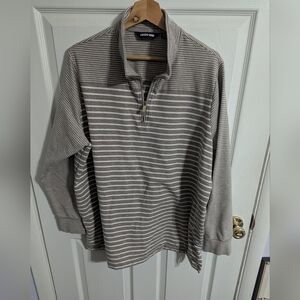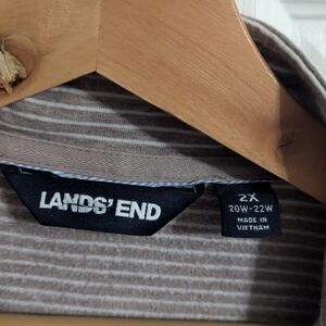 Lands End Womens 2X 1/4 Zip Pullover Plus Size Long Sleeve Striped Beige Sweater