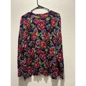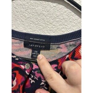 Lands End Women’s 2X 20W-22W Supima Cotton Button Up Cardigan Floral Multicolor