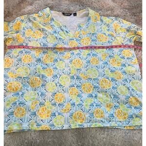 Lands’ End Women’s 2X Citrus Orange Lemon Split Neck Cotton Spandex Top