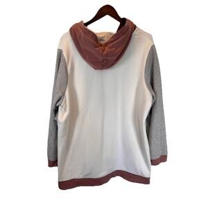 Lands' End Women’s 2X Serious Sweats Hooded Colorblock Sweatshirt Pullover White