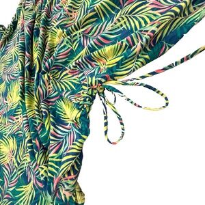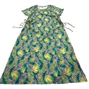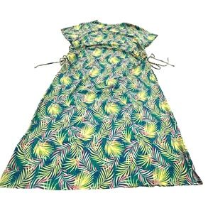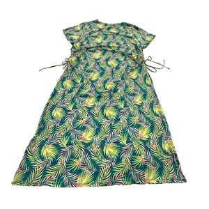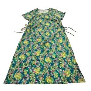 Lands’ End Women’s 2X Stretch Jersey Dress Green Palm Leaf Print Cinch Ties Plus