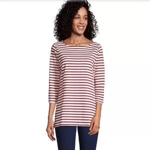 Land’s End Women's 3/4 Sleeve Heavyweight Jersey Striped Boatneck Tunic Small