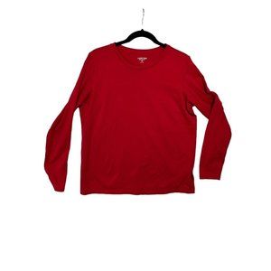Lands End Womens 3/4 Sleeve Top Medium 10-12 Red Cotton Modal Knit Shaped Fit