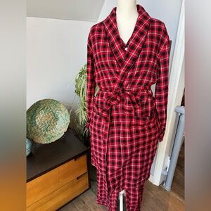 Lands' End Womens 3-Piece Red Plaid Flannel Pajama Set w/ Robe Medium cozy comfy