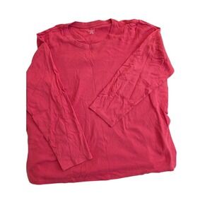 Lands' End Women's 3X Long Sleeve Crew Neck 100% Cotton T Shirt Top Pink