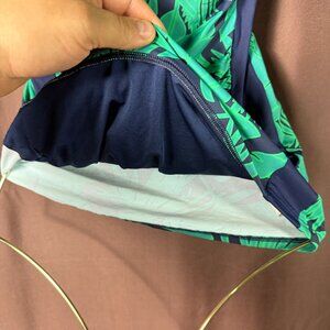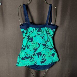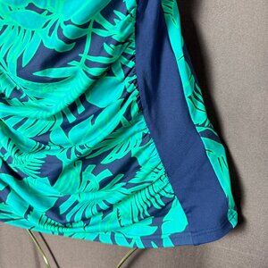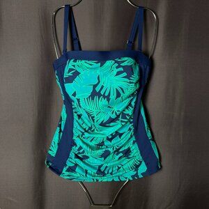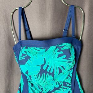 Lands' End Women's 4, 2-10 LONG Bandeau Tankini Swimsuit Top Tropical Print Navy/Emerald Palm Foliage