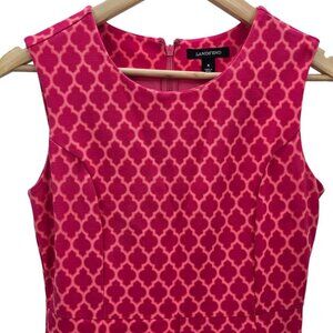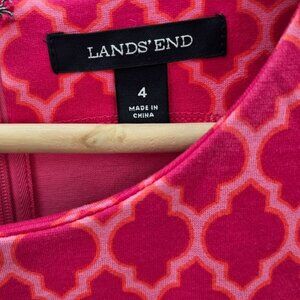 Lands' End Womens 4 Ponte Knit Sleeveless Pink Geometric Dress