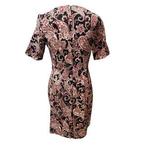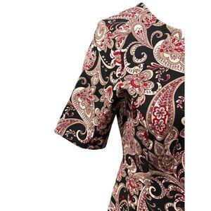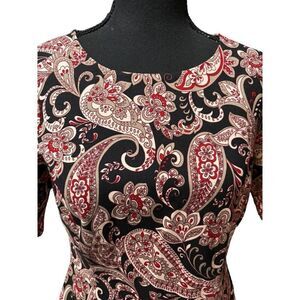 Lands End Womens 4 Short Sleeve Fitted Dress Black Red Paisley Print Knee Length