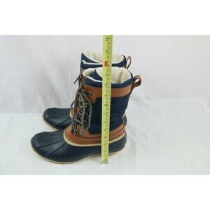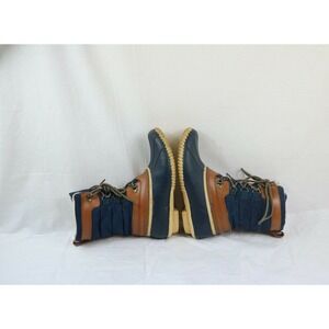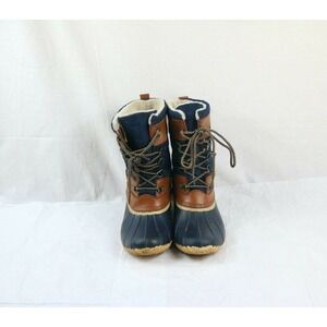 Lands End Womens 502432 Lined Winter Duck Boots Mid Calf Lace Up Blue Brown 7.5B