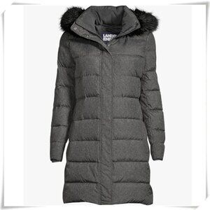 Land's End Women's 600 Down Winter Coat in Grey Heather w/ Hood 3X PETITE Plus